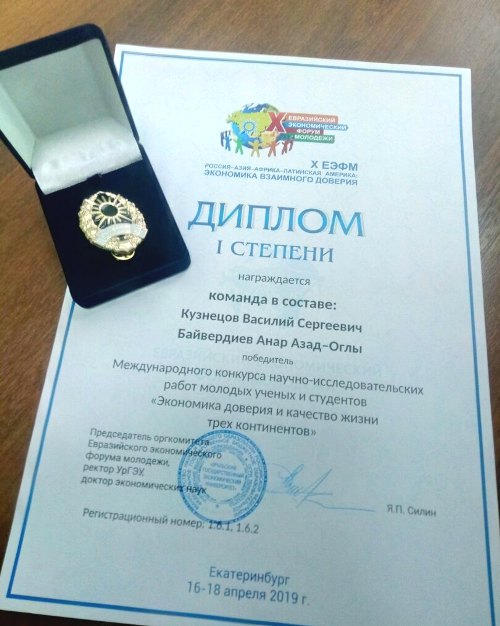 Проект студентов факультета транспортно-технологических машин и сервиса УрГАУ Анара Байвердиева и Василия Кузнецова «Повышение качества продукции сельского хозяйства за счет применения БПЛА в системе точного земледелия» занял 1 место в конкурсе «Экономика доверия и качество жизни трех континентов» в рамках ЕЭФМ.