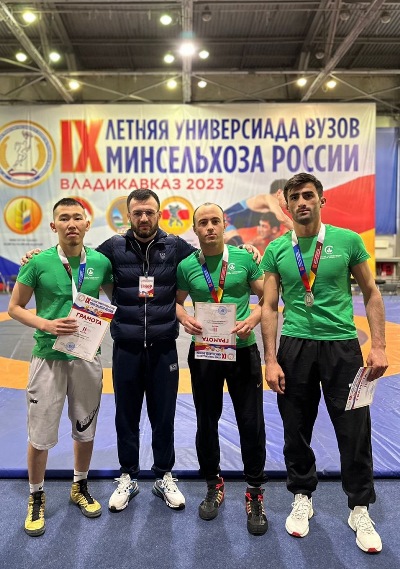 В греко-римской борьбе серебряными призерами стали: студент 3 курса факультета агротехнологий и землеустройства Чингиз Мартан (весовая категория до 55 кг), студент 1 курса факультета инженерных технологий Алишер Одинаев (весовая категория до 63 кг), студент 3 курса факультета инженерных технологий Санъатджон Джумаев (весовая категория до 67 кг).