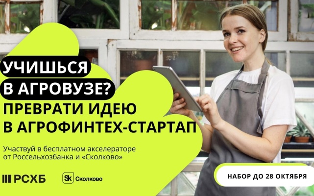Россельхозбанк и Фонд «Сколково» приглашают студентов, аспирантов и молодых ученых с инновационными идеями для АПК и финансовой отрасли.