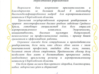 Поздравления от коллег в честь Дня науки и Дня рождения Уральского государственного аграрного университета!